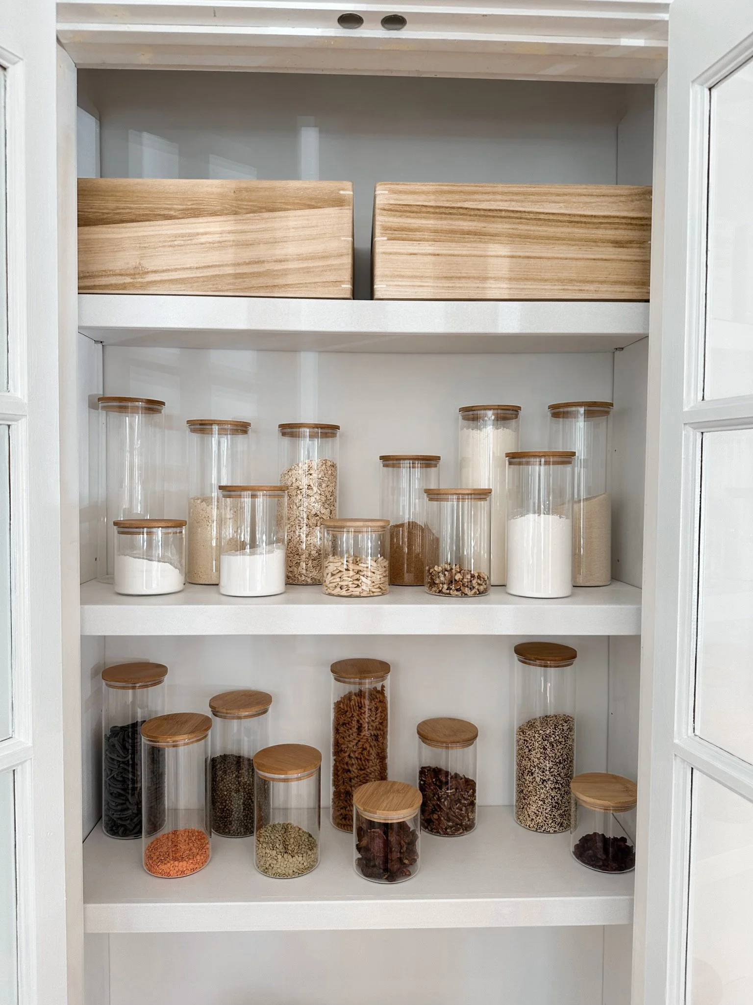 And when it comes to decanting? It’s optional. It can look beautiful and improve visibility—but only if you’ll truly maintain it. A simple, hybrid approach often works best. We love matching jars for spices and canisters for pantry staples.